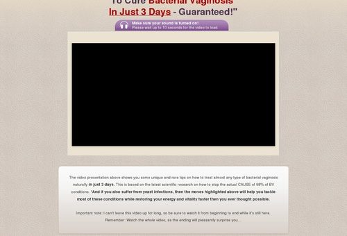 The video presentation above shows you some unique and rare tips on how to treat almost any type of bacterial vaginosis naturally in just 3 days. This is based on the latest scientific research on how to stop the actual CAUSE of 98% of BV conditions. *And if you also suffer from yeast infections, then the moves highlighted above will help you tackle most of these conditions while restoring your energy and vitality faster then you ever thought possible.