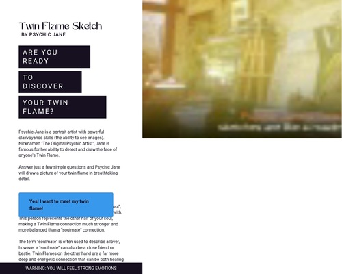 the face of anyone’s Twin Flame.‍Answer just a few simple questions and Psychic Jane will draw a